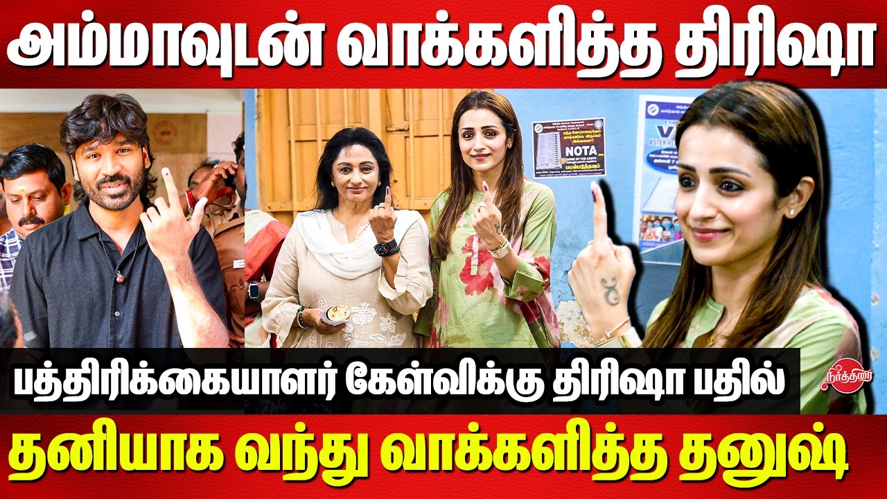 அம்மாவுடன் வாக்களித்த திரிஷா..Trisha cast her vote with her mom..Danush Cast his vote at alwarpet